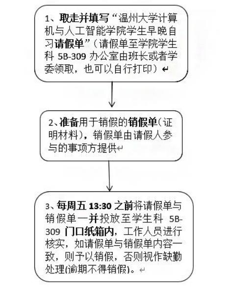 2.各同学应自觉参加早晚自习,不得迟到、早退,因故不能参加者,须提前和班级负责考勤同学请假并提供相关证明,凡未请假者或无故超假者,均按旷课处理;